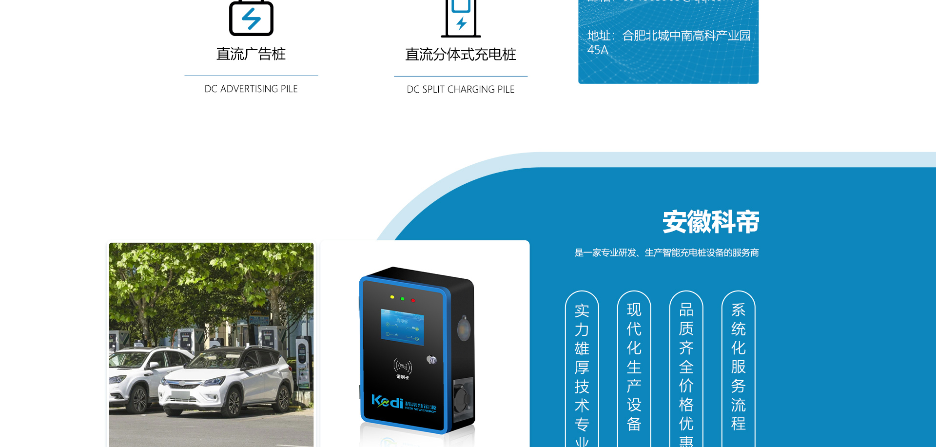 關(guān)于我們安徽科帝新能源科技有限公司坐落于安徽省會-合肥,是一家研發(fā)、生產(chǎn)智能充電樁設(shè)備,汽車充電站后臺監(jiān)控管理系統(tǒng)和生產(chǎn)高壓開關(guān)設(shè)備的企業(yè).由專門的研發(fā)團隊、管理團隊按照現(xiàn)代化企業(yè)制度規(guī)范設(shè)立的有限責任公司。致力于為能源智能、安全的應(yīng)用和節(jié)能減排提供整體的技術(shù)與產(chǎn)品解決方案。科帝集研發(fā)、設(shè)計、生產(chǎn)、銷售以及服務(wù)于一體,在電動汽車充電方案,充電設(shè)施建設(shè)和城市配電方面擁有廣泛的技術(shù)研究及經(jīng)驗積累,為客戶提供安全、智能的充電設(shè)備及充電運營站建設(shè)一體化解決方案。并堅持以人為本、質(zhì)量為先、顧客至上、不斷創(chuàng)新”的企業(yè)理念,為能源行業(yè)的發(fā)展、節(jié)能減排做出重大的貢獻。公司擁有豐富的產(chǎn)品種類,目前科帝已研發(fā)生產(chǎn)了三十多種產(chǎn)品,充電設(shè)備有直流一體式充電樁、直流分體式充電樁、直流廣告樁、交流廣告樁、廣告一體樁、壁掛交直流樁;等多種充電設(shè)備;每一款產(chǎn)品都是精心打造,力求為客戶提供優(yōu)越的用戶體驗。展望未來科帝將通過持續(xù)的自...